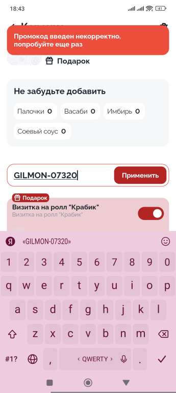 в корзине введите промокод в специальное поле и в корзине появится второй сет «Голодный самурай» за 0₽;
