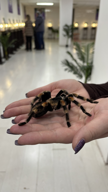 Были всей семьей на этой выставке. Я сама боюсь даже маленьких пауков, а здесь большие тарантулы. Каждый сидит в своём террариуме, возле каждого животного есть табличка - можно прочитать и понять... Показать всё